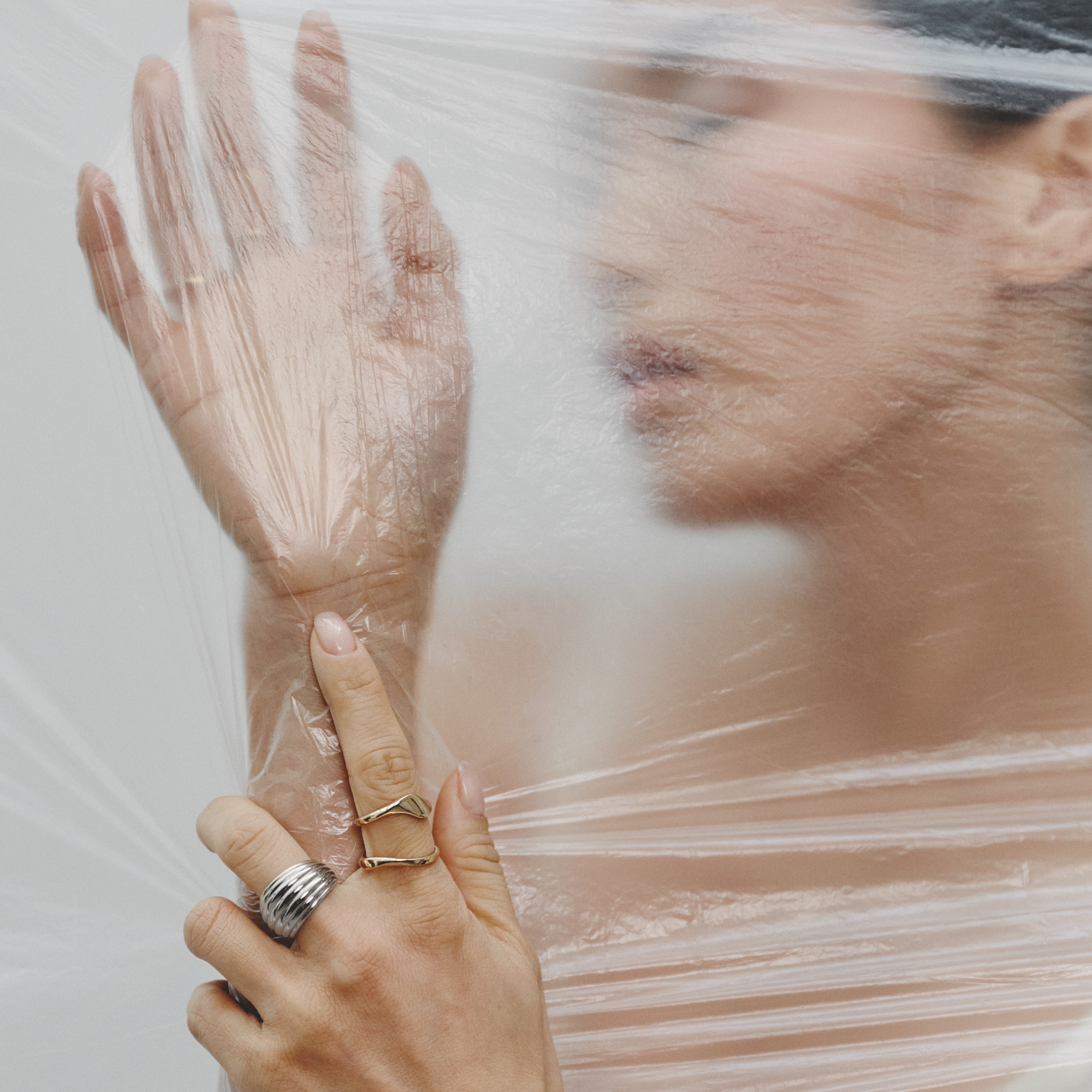 La modèle porte les bijoux : ÉLOQUANTE ; INNACCESSIBLE ; IMAGINATIVE